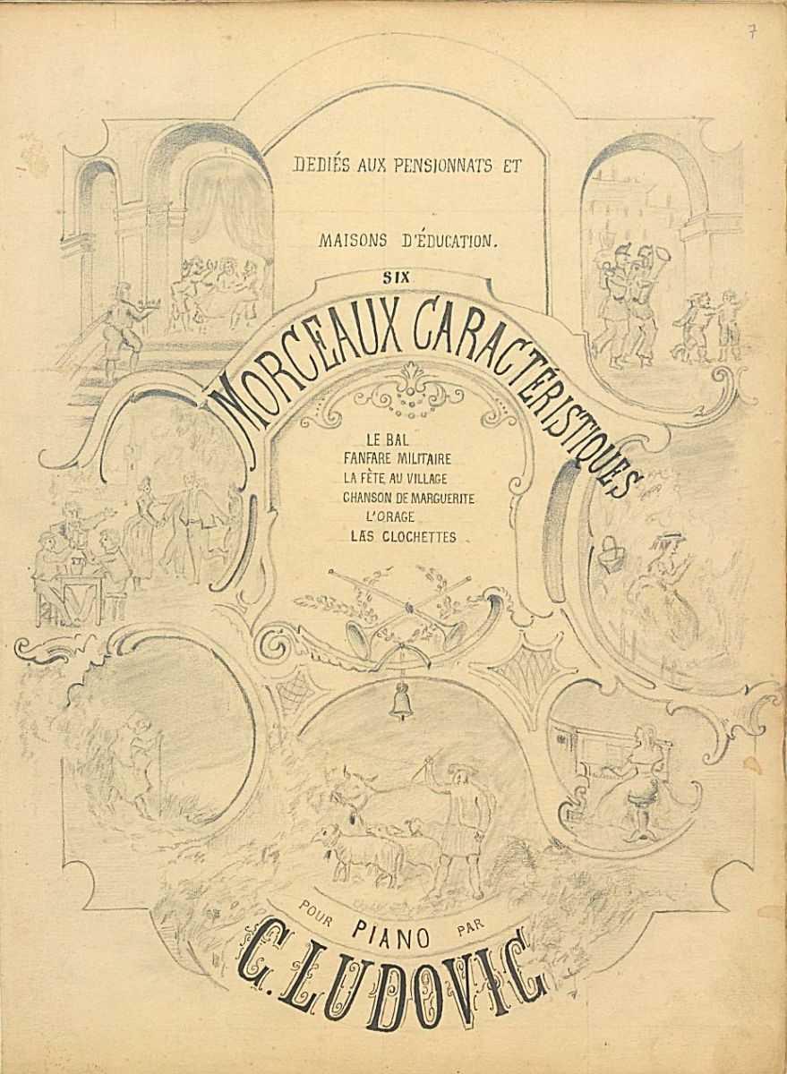 In the popular genre of the time, songs with piano accompaniment, we find a remarkable book of copied music where the sister has not only meticulously copied the music but the title pages as well.