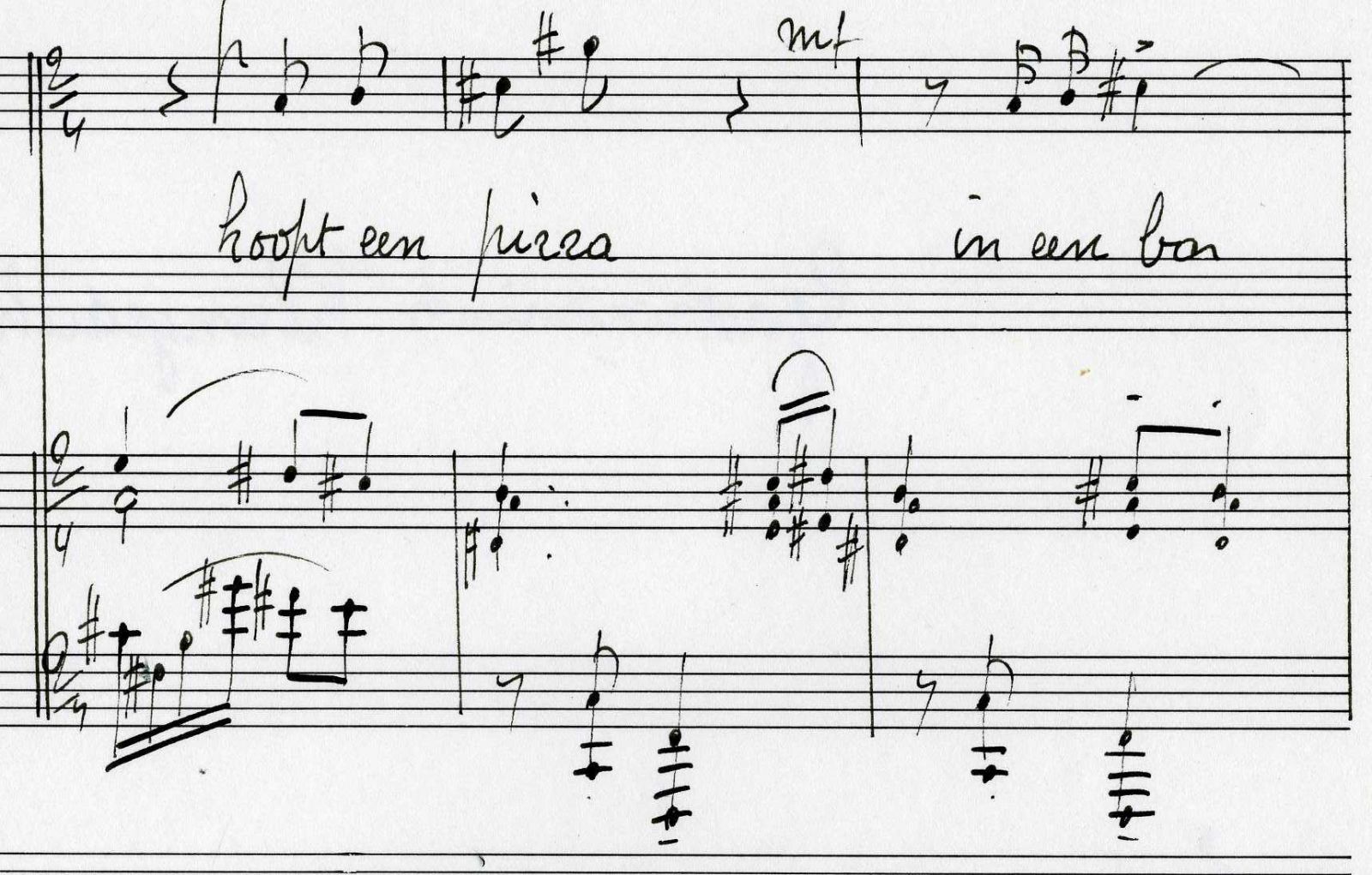 Peter Cabus composed no less than three hundred works for diverse settings. His instrumental oeuvre comprises solo and chamber music alongside symphonic works and concerti. His songs, cantatas and choral works are composed on Dutch, French, English and even Latin texts. His popularity as a composer can be seen by the many comissions that he recieved: Het jonge paar, 1986 comissioned by the radio station BRT, Muziek voor orgel, kopers en percussie, 1978 Festival van Vlaanderen and the Symfonie voor strijkers, 1986 Festival van Vlaanderen. From his passion for music education it is not surprising that many of his works are written with teaching in mind.