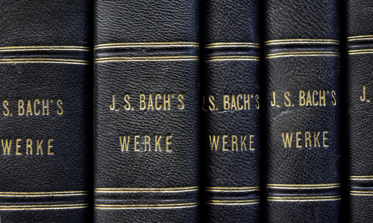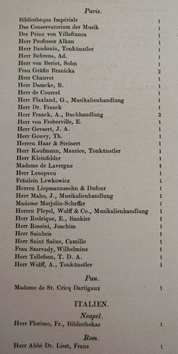 Volumes van het verzameld werk van J. S. Bach die door Rossini aangekocht zijn, 1847-1868. FEM-709.     Fragment van de lijst van intekenaars van het verzameld werk van J. S. Bach, met o.a. de vermelding van ‘Joachim Rossini’. FEM-709.