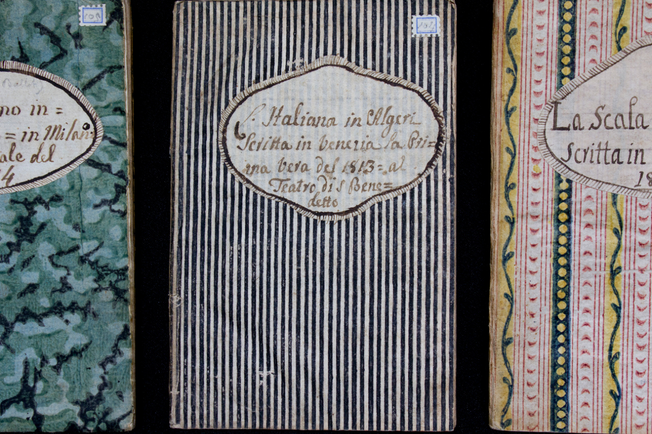 Vermeldenswaard zijn ook de ongeveer vijfendertig libretti van Rossini-opera’s, verzameld door zijn vader Giuseppe Rossini (ca. 1760-1839). Elk libretto heeft een decoratieve, papieren band gekregen en een etiket in handschrift.