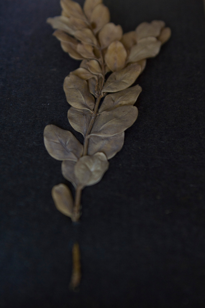 Palmtakje van Rossini’s sterfbed. FEM-921.     De laatste tastbare herinnering uit 1887 van Michotte aan de Italiaanse maestro:  gedroogde bloemen afkomstig van de bijzetting van Rossini’s stoffelijk overschot in de Santa Croce in Firenze, Rossini’s definitieve rustplaats. FEM-262.
