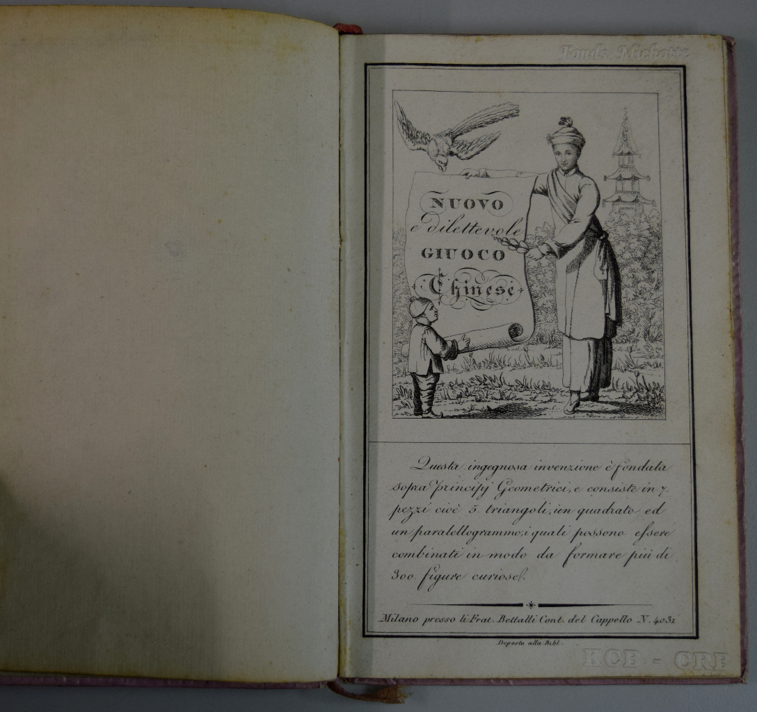 Een ‘nieuw en aangenaam Chinees spel’, een Milanese uitgave met de initialen van Isabella Colbran op het voorplat. FEM-847.     Een ‘nieuw en aangenaam Chinees spel’, een Milanese uitgave met de initialen van Isabella Colbran op het voorplat. FEM-847.