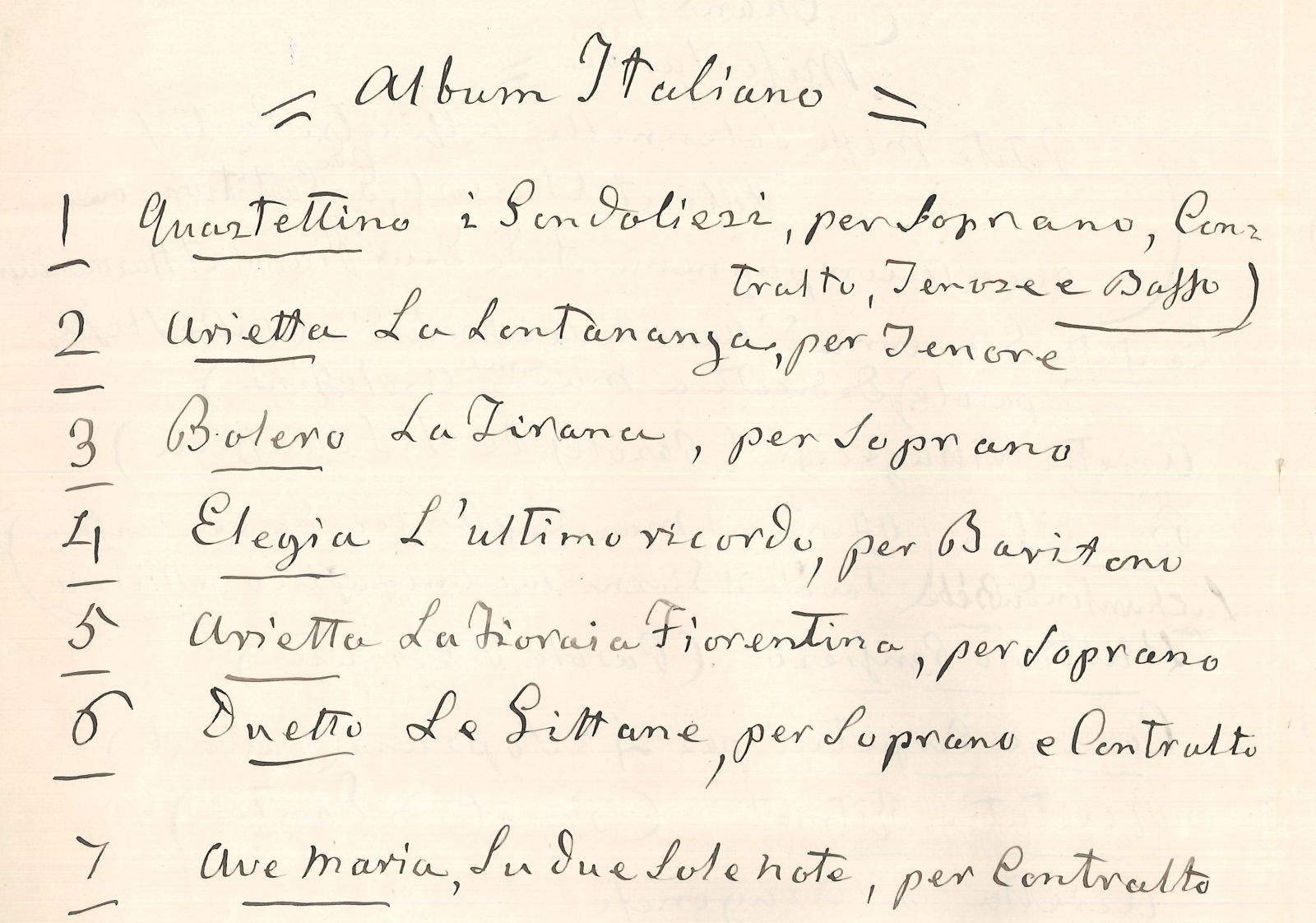 Inhoudelijk focust de verzameling vnl. op Italiaanse en Franse componisten uit de 19e eeuw.