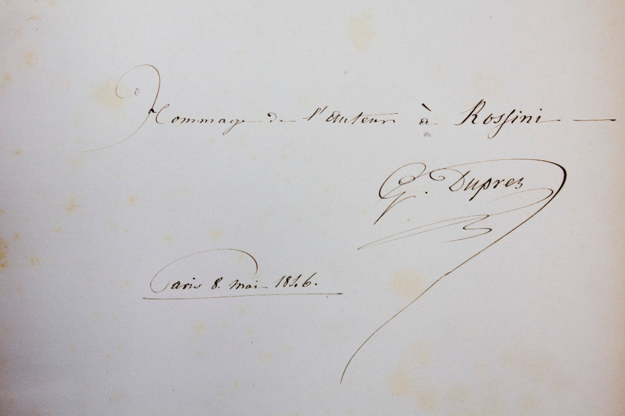 L’Art du chant van Duprez, Parijs 1846, met autografische opdracht aan Rossini. B-Bc P-1-16.      L’Art du chant van Duprez, Parijs 1846, met autografische opdracht aan Rossini. B-Bc P-1-16.